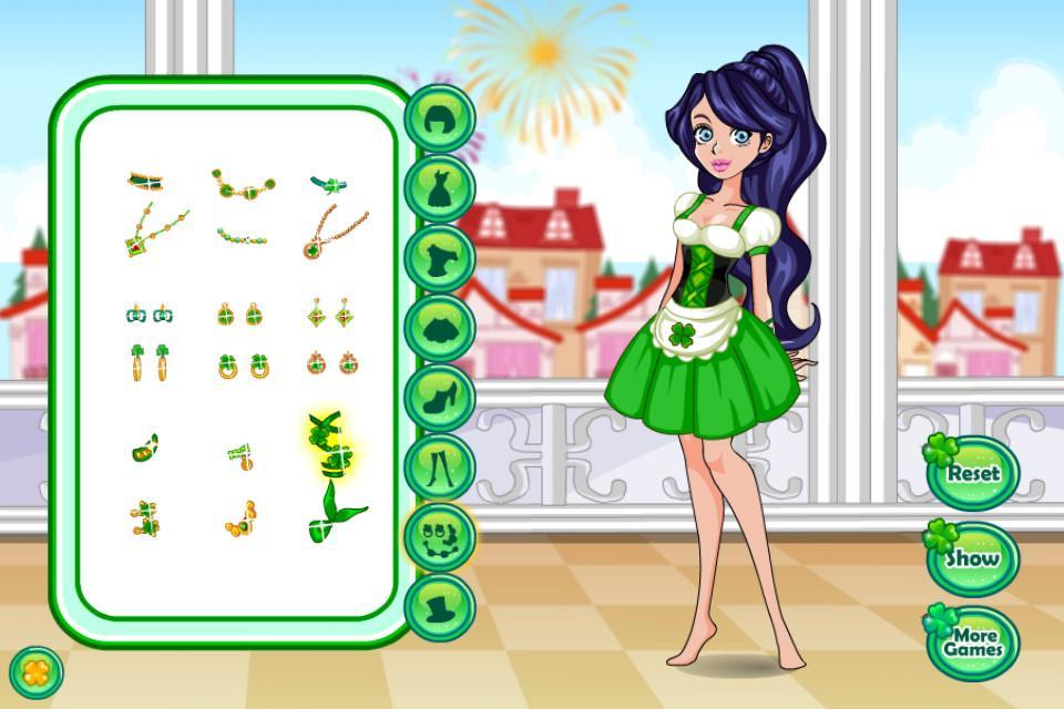 St. Patrick's Day is coming! Julie is preparing for the celebration of parade. Look at all these cute green dresses and accessories! Could you help her choose the most beautiful outfit? Have fun!