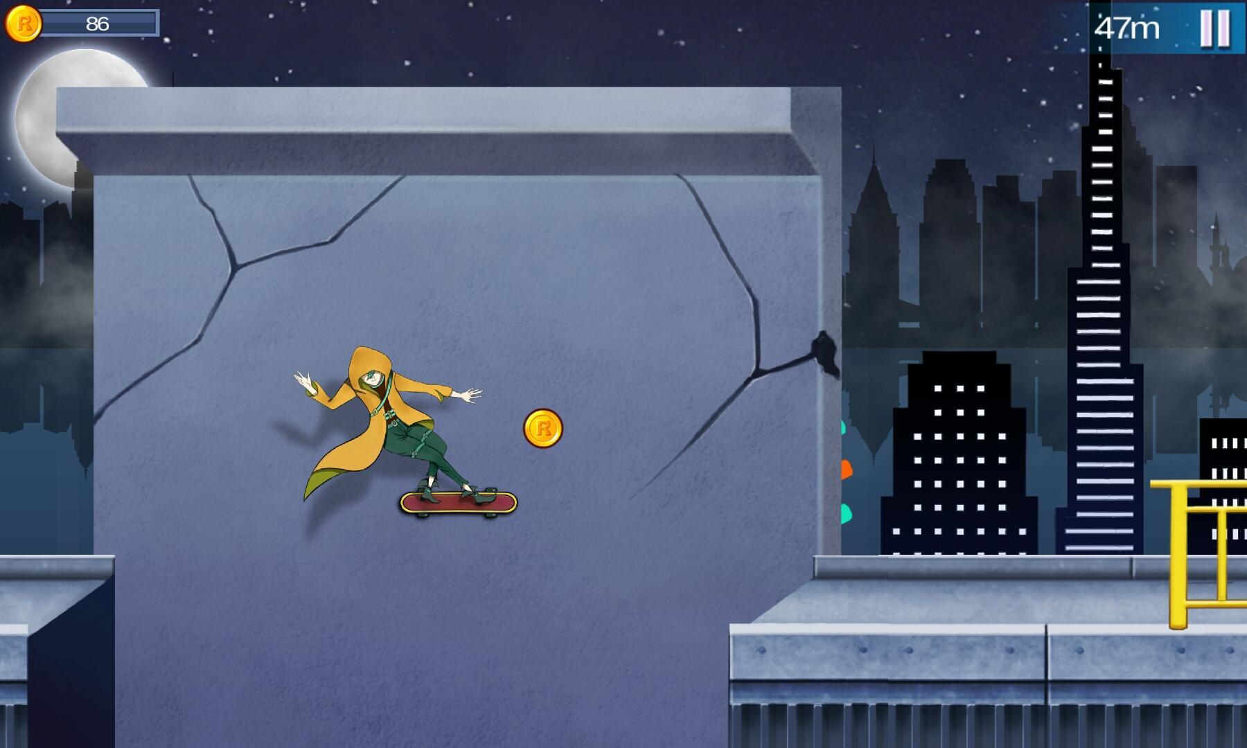 Cool! Surfing, running, jumping, climbing, all on your skateboard.