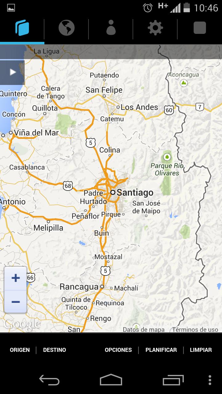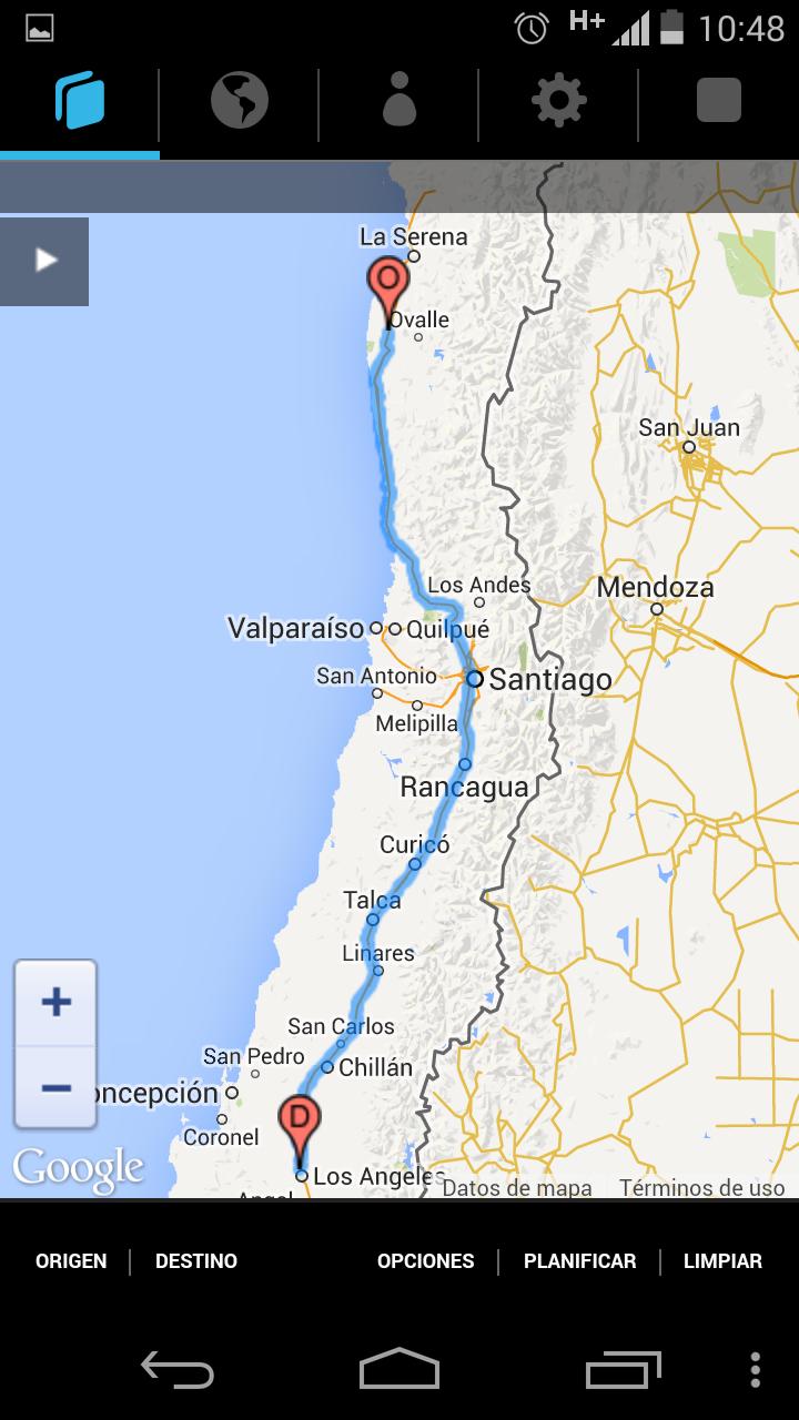 Perencana zona istirahat dalam versi pertamanya, menyediakan lokasi yang relevan dan layanan informasi dari area istirahat yang ada di sepanjang Rute 5 Chili (versi mendatang akan menggabungkan rute jaringan baru).