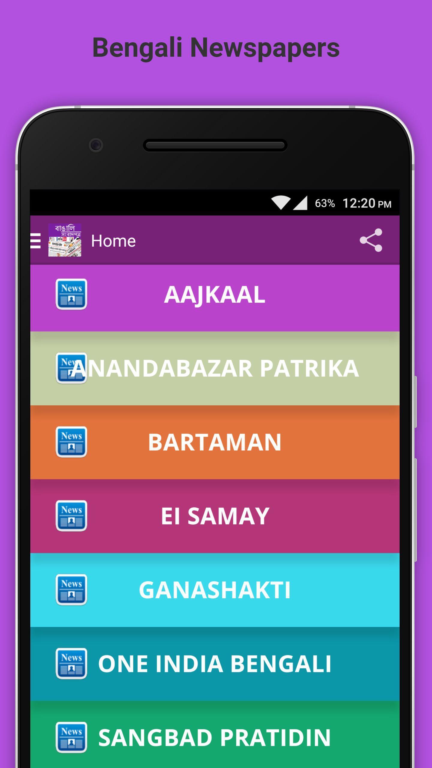 Bengali Newspapers (Benggala Barat) dalam satu aplikasi.