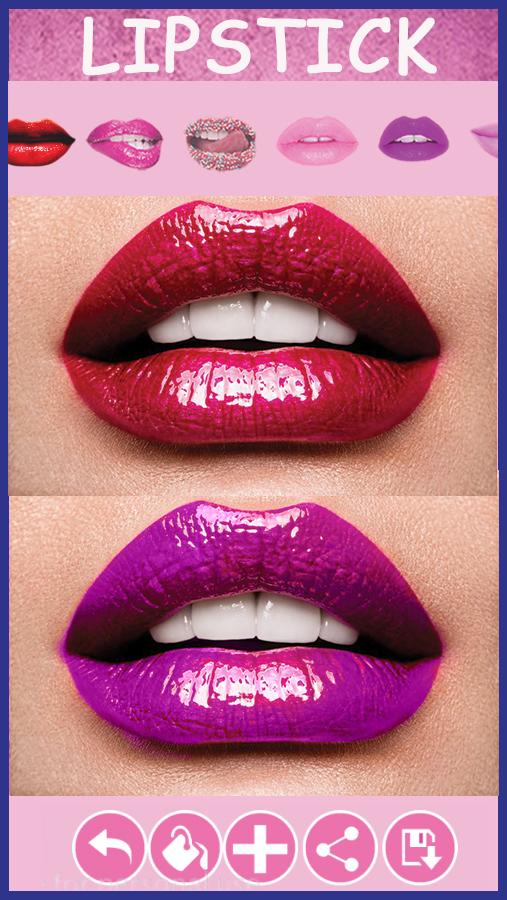 - Ubah warna bibir dengan pilihan warna bibir lipstik membuat makeup warna bibir merah. Tersedia berbeda untuk menerapkannya pada bibir Anda di foto jika Anda lupa menerapkan lipstik sebelum mengambil gambar.