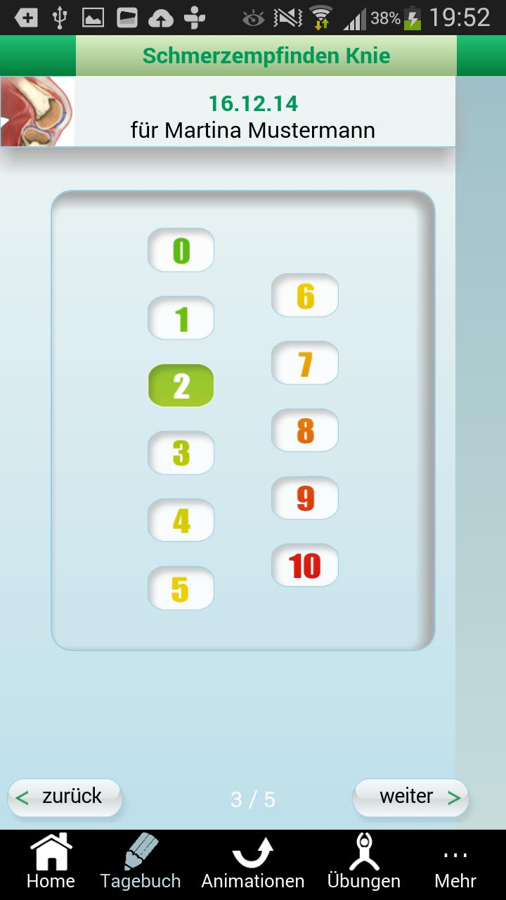 Aplikasi yang dilengkapi secara luas menawarkan banyak tips berkualitas tinggi, bantuan, dan latihan terapi. Penggunaan Arthrose-Tagebuch yang ditargetkan membuat dialog antara dokter dan pasien memfasilitasi dan dapat secara berkelanjutan mendukung dan menyertai terapi.