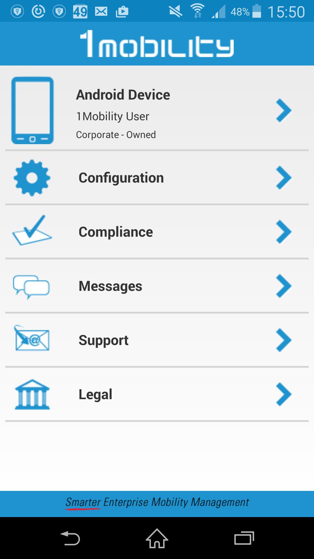 1Mobility adalah platform manajemen perangkat perusahaan. Agen MDM 1Mobility memungkinkan platform perusahaan untuk mengelola perangkat dengan aman.
