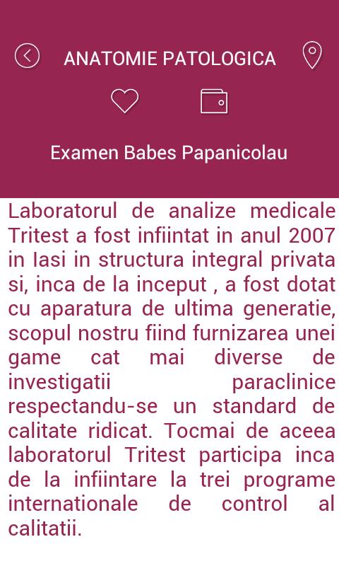 Jenis investigasi lain yang tidak dapat ditemukan dalam daftar analisis kami dapat dilakukan berdasarkan permintaan dengan subkontrak laboratorium di Rumania atau di luar negeri.