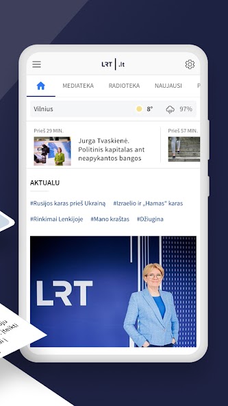 Dengan aplikasi seluler LRT.lt , tonton konten yang disiarkan oleh LRT Television, LRT Plus, LRT Lituanica, LRT Radio, LRT Opus, LRT Klasika dan secara eksklusif di Portal LRT.lt
