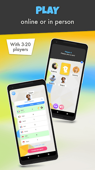 1. Mode offline: Semua orang bermain di telepon yang sama. Pemain harus bersama secara fisik.