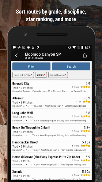 •多くの要求されたルートファインダー:規律、難易度、星のランキングなど、ルートを簡単に並べ替えます。 4つ星のM9があなたのものである場合、私たちはあなたがそれを見つけるのを手伝います。