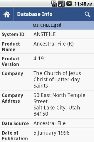 現在の系図アプリケーションとインターネットサービスからエクスポートされているGedcomファイルを表示します。個人、家族、ソース、データベース情報、または子孫ツリーによる表示。トップレベルのビューは、追加の詳細ビューにリンクされています。