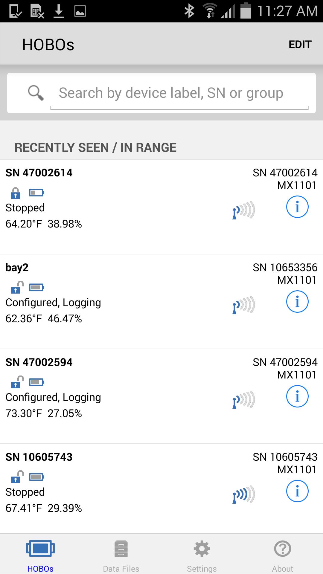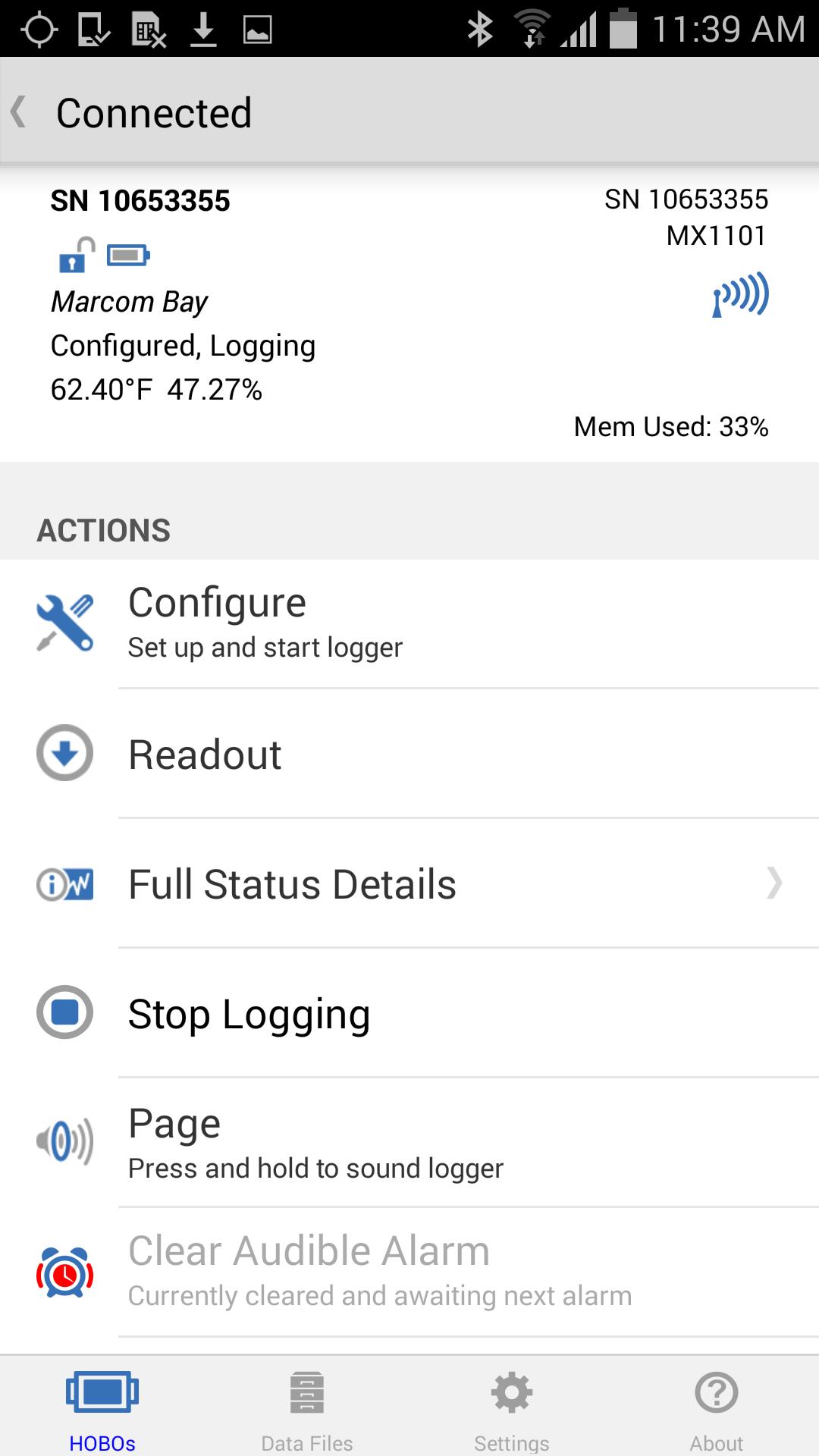 HOBOmobileは、Bluetooth Low Energy(BLE)HOBO®MXデータロガー向けに設計されています