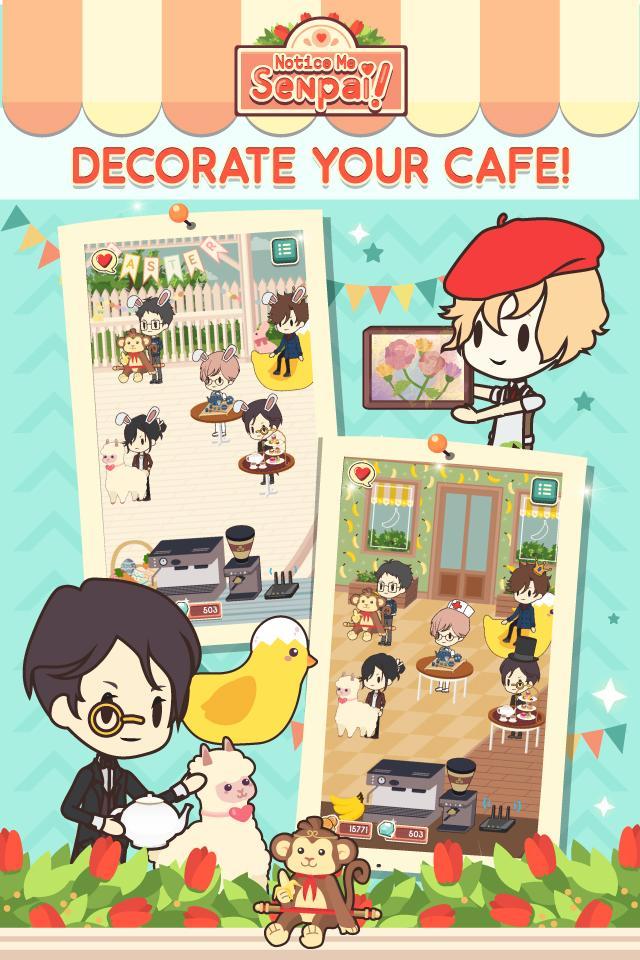 「 Notice Me Senpai 」では、エリートオールボーイズ私立学校で最初の女子生徒としてプレーします。キャンパス3年生の建物カフェで仕事に就き、授業料の支払いを支援します。コーヒーを組み合わせて装飾を組み合わせることで、新しい顧客(SENPAI)を引き付けます。カフェを管理するとき、あなたはあらゆる種類のかわいいイケマンの先輩(上級者または先輩)に会います。オタクからジョック、有名なポップアイドルや神秘的な男性まで、この学校には選択肢があります。あなたはそれらすべてにあなたに気づかせることができますか?