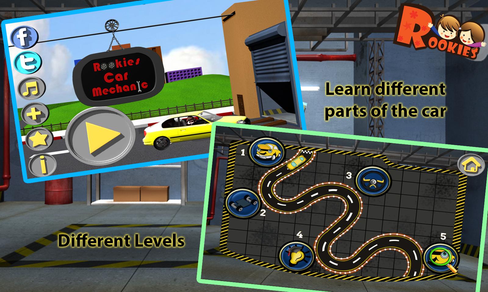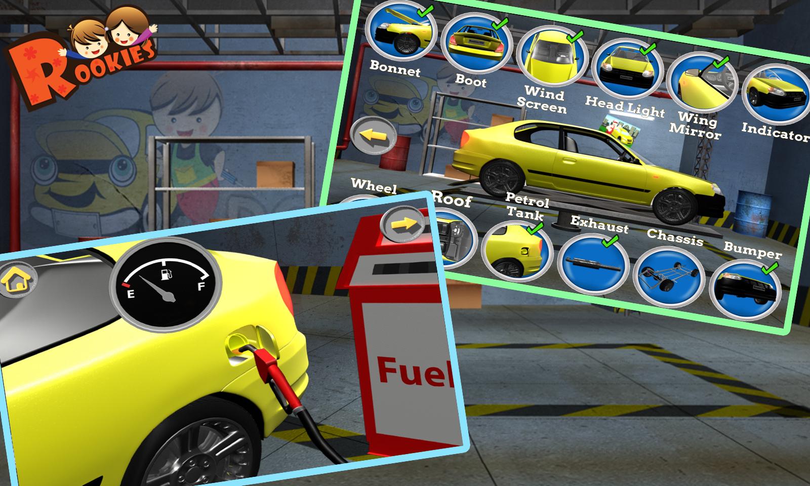 Rookies Car Mechanic Learning Game은 주석에서 정확히 말하는 것입니다. 자녀는 보닛, 배터리, 냉각수, 라디에이터, 엔진, 에어 필터, 부츠, 헤드 라이트, 윈드 스크린, 날개 거울, 표시기, 바퀴, 선 루프, 연료 탱크, 배기, 섀시 및 범퍼와 같은 자동차의 다양한 부분에 대해 배우게합니다.