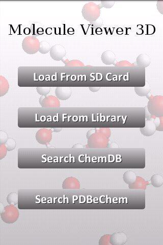 SD 카드에 저장된 가장 일반적인 3D 분자 파일 형식을 열거 나 분자 라이브러리에 포함 된 243 개 분자 중 하나를 선택하십시오.