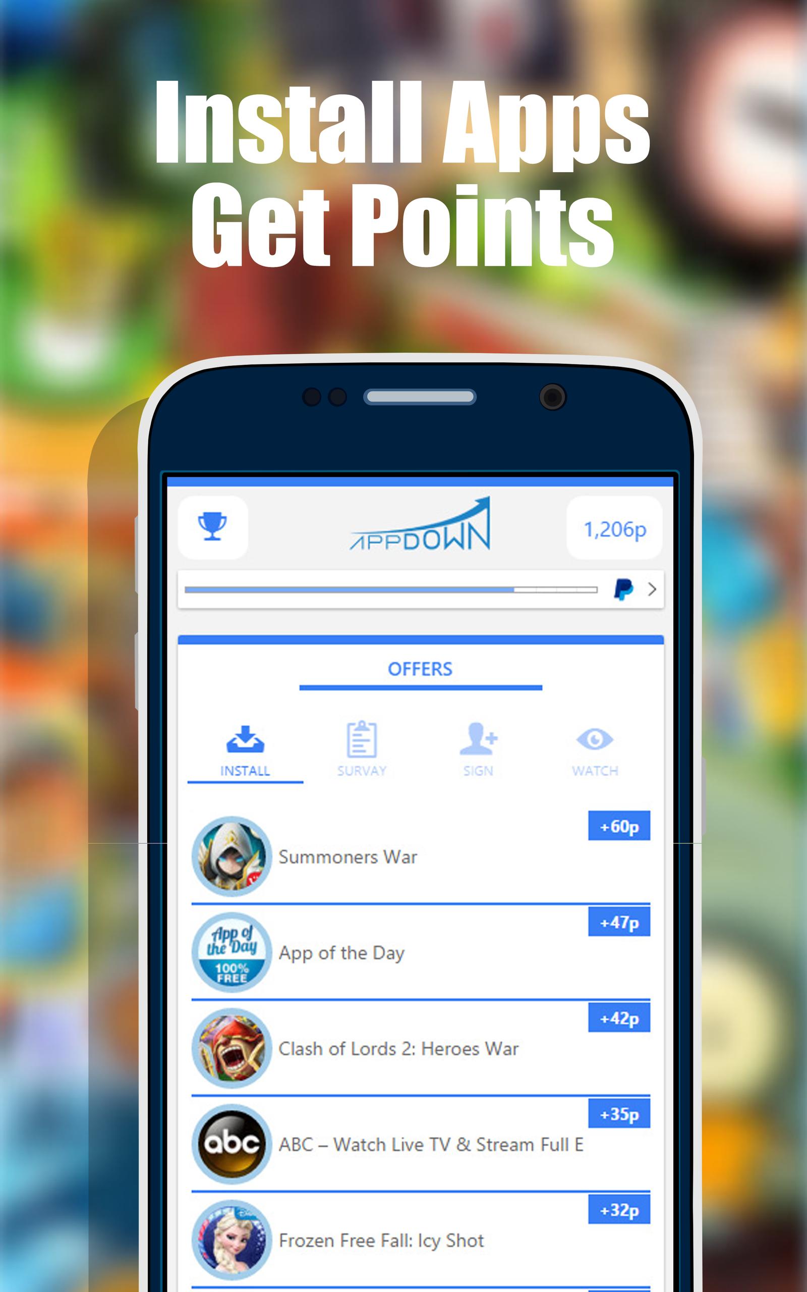 많은 제안을 다운로드하면 포인트를 기프트 카드로 상환하거나 Appdown 앱에서 단순히 PayPal에서 현금을 얻을 수 있습니다.