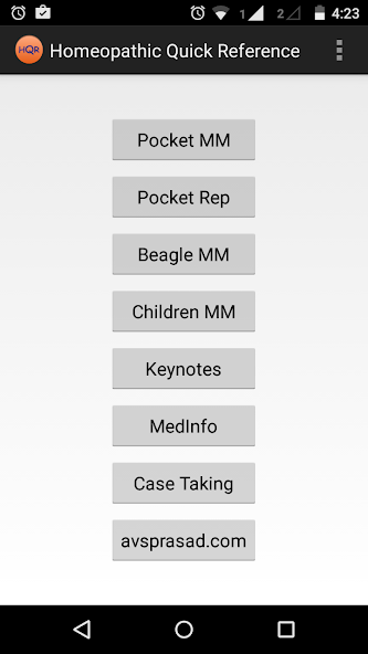 7 개의 섹션으로 구성된이 제품에는 포켓 레퍼토리, 포켓 Materia Medica, Beagle MM, 어린이의 물질 메디카, 연구 기조 연설, 사례 복용 원조 및 마지막으로 음식, 질병 상태 등과 같은 유용한 의료 정보가 있습니다. 휴대 전화에서 쉽게 구할 수있는 빠른 포켓 알림 역할을합니다. 이 정보는 약물을 상호 참조하고 분류뿐만 아니라 치료 관계에 대한 정보를 제공하는 독특한 방식으로 구성됩니다. 이 앱은 또한 웹 사이트 http://www.avsprasad.com에 대한 빠른 액세스를 제공하며, 몇 가지 무료 Homoeopathic Resources/프로그램이 있습니다.