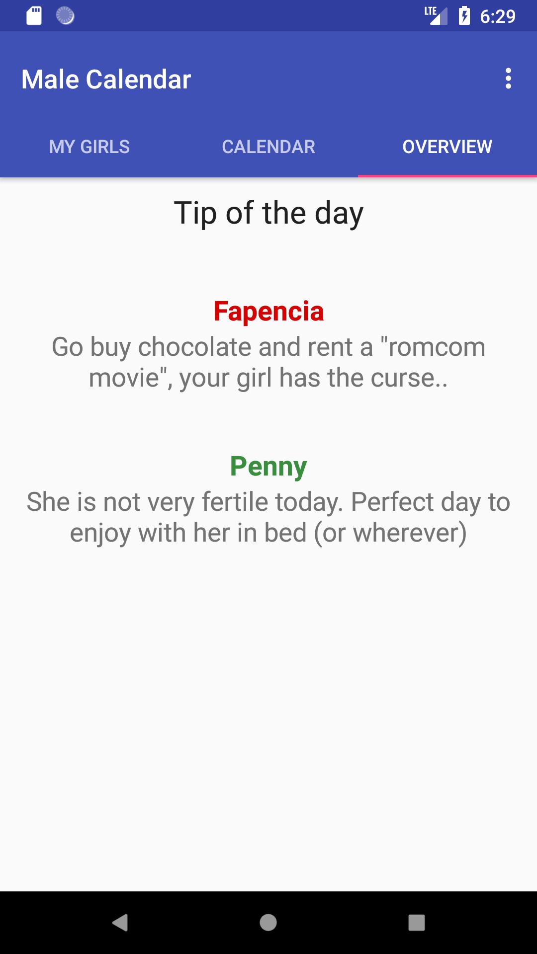 Male Calendar 파트너의 월경주기를 매일 모니터링 할 수 있습니다.