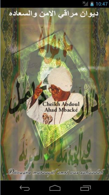 Diwanu 3 :«Diwanu Marakil Amri는 Sahaadah»앱은 Touba의 Khadim Rassoul 도서관 (Daray Kamil)의 전 Curor 인 S. Mamadou Diagne이 수집 한 7 개의 Diwans를 대표하는 7 개의 7 개의 응용 프로그램의 세 번째 부분입니다.