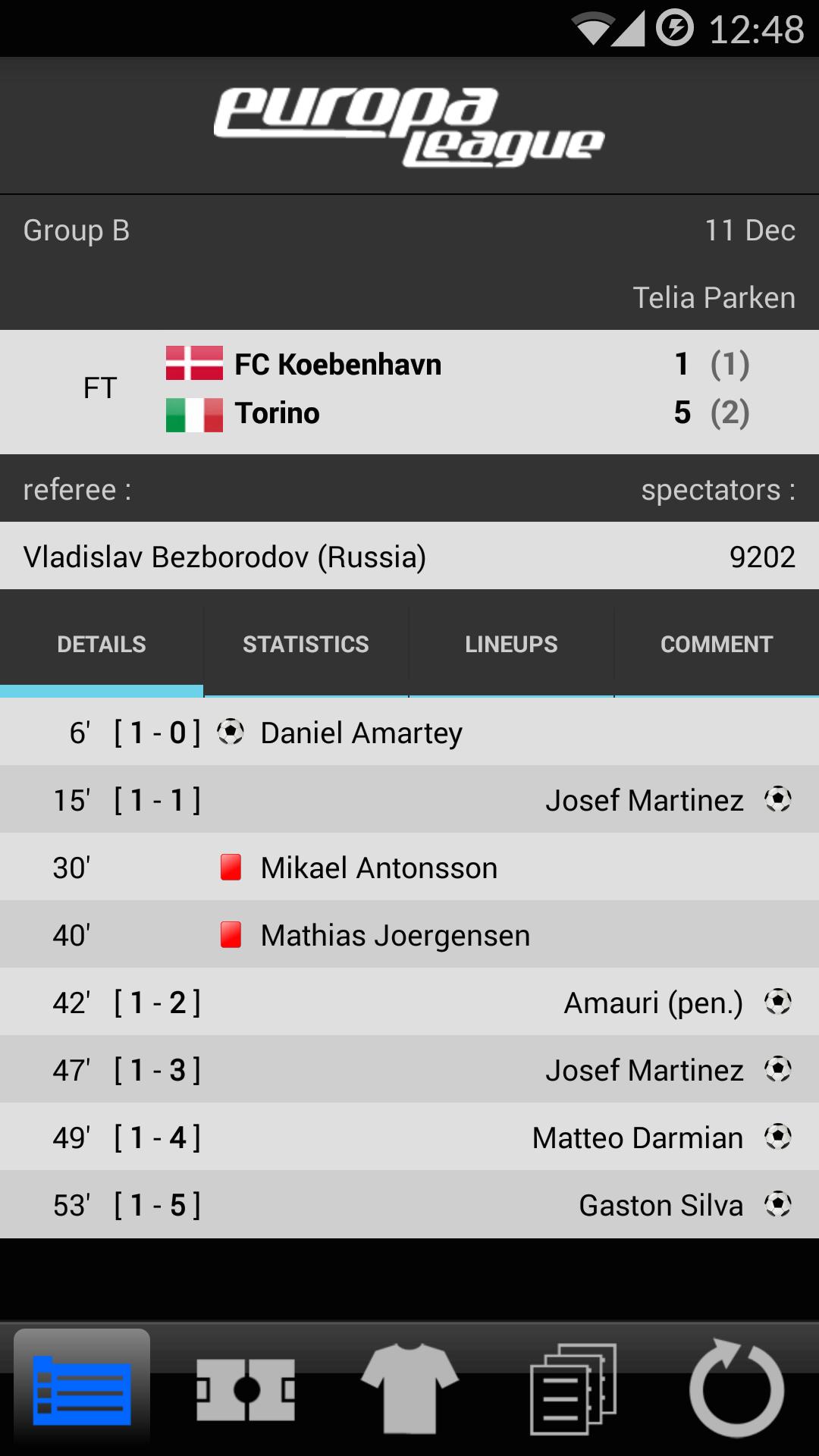 LiveScore Europa League 앱.