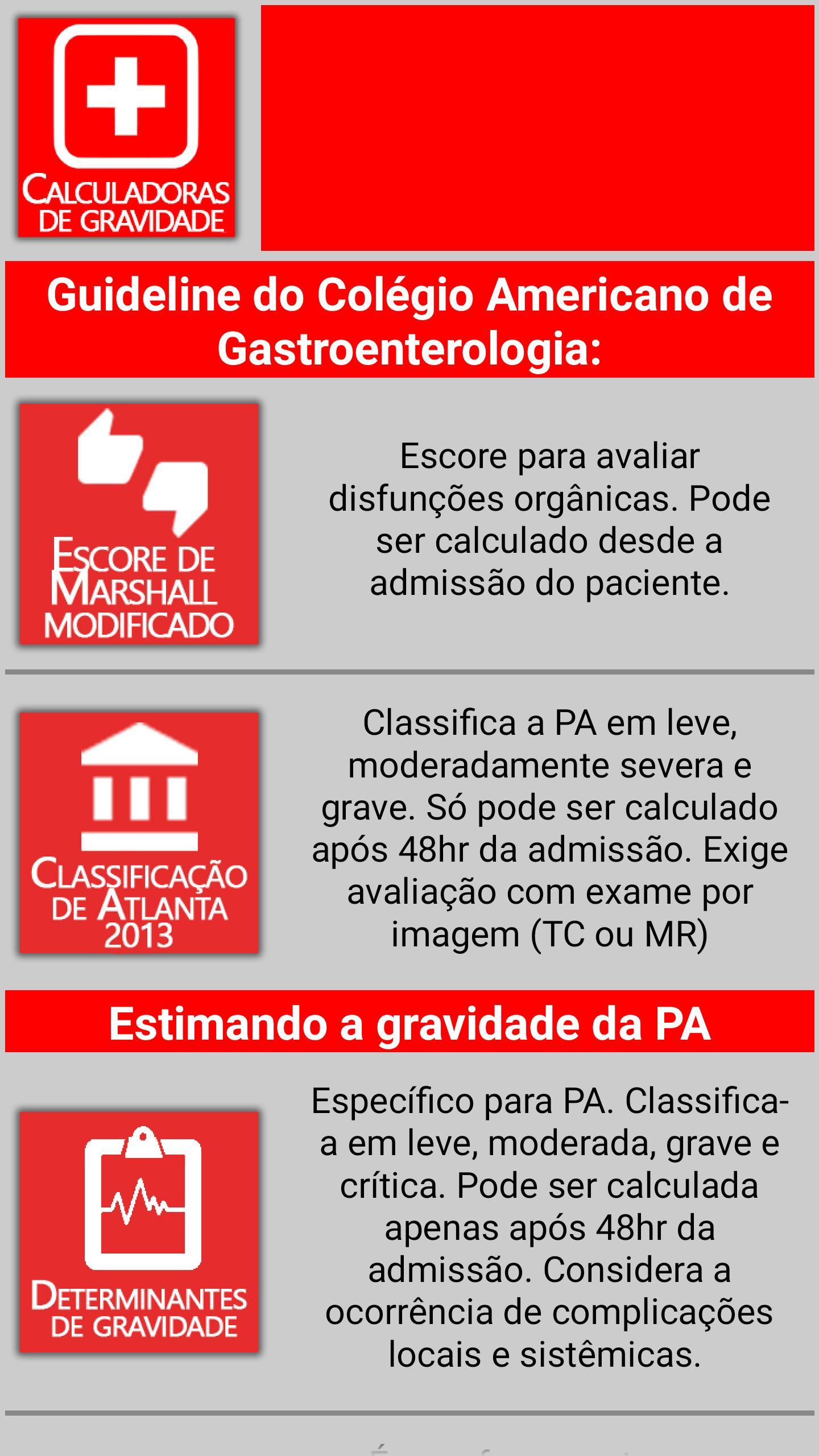 이 응용 프로그램에 포함 된 정보는 Tercio de Campos와 Samir Rassian의“Acute Pancreatitis”와 Samir Rassian의“Acute Pancreatitis”책에서 이용할 수있는 산타 카사 드 상파울루 중앙 응급실에서 채택 된 행동과 급성 췌장염의 전도를위한 미국 위에 서류학의 가장 최신 지침 (2013)에 기반을두고 있습니다.