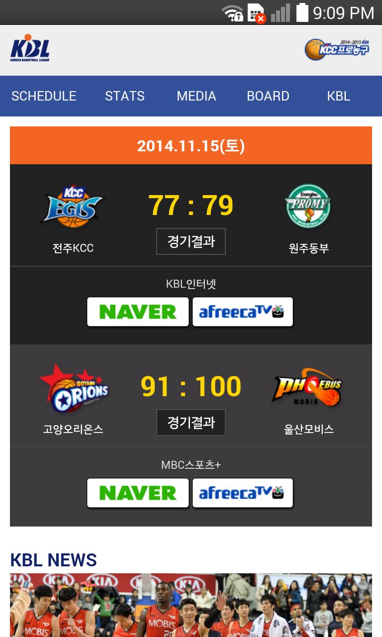 실시간으로 업데이트 되는 경기정보 제공 및 한국프로농구의 뉴스 및 기사를 제공합니다.