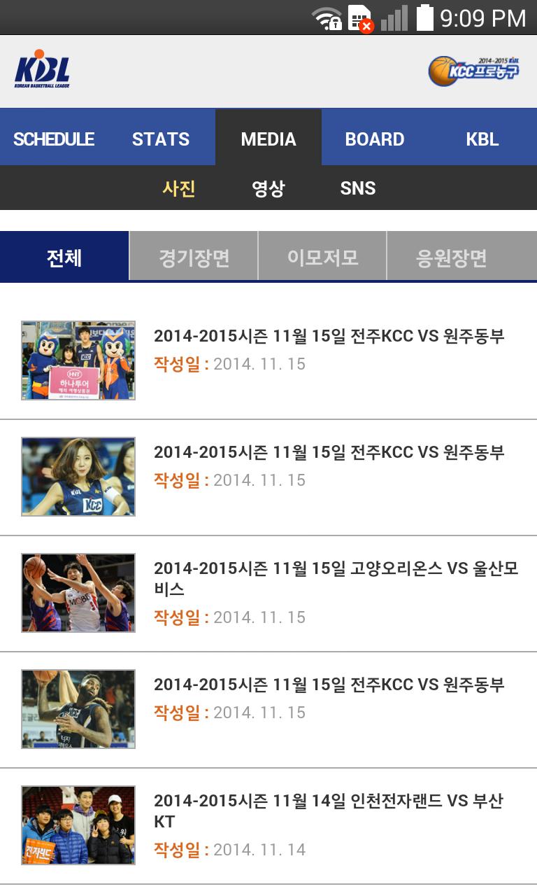 Through a smartphone Korea professional basketball game with live TV broadcasts and text relay team, player information, providing application