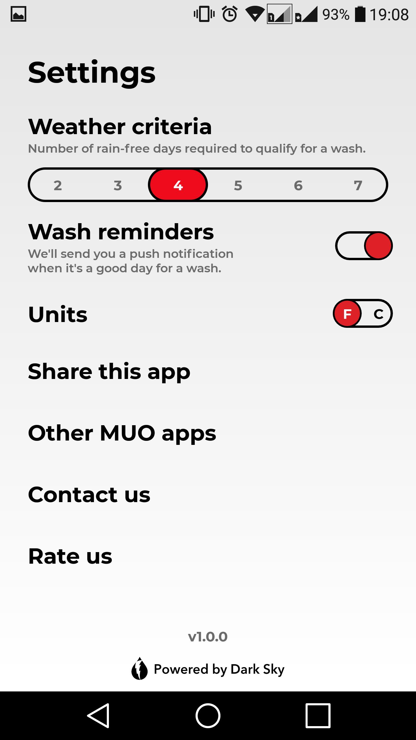 앱을 직접 확인할 필요조차 없습니다. Washie 세탁에 좋은 날이라면 알림을 보냅니다. 그리고 일주일이 너무 길면 걱정이 너무 길면 기준을 2 일에서 7 일로 변경할 수 있습니다.