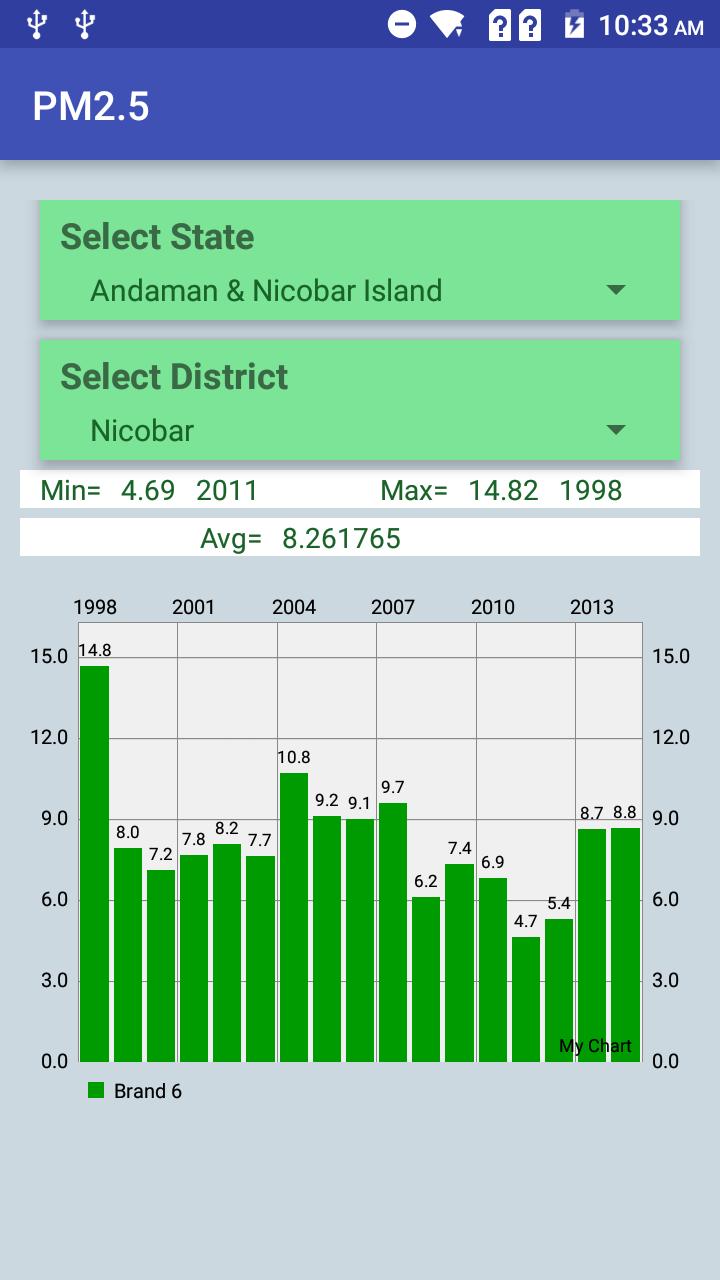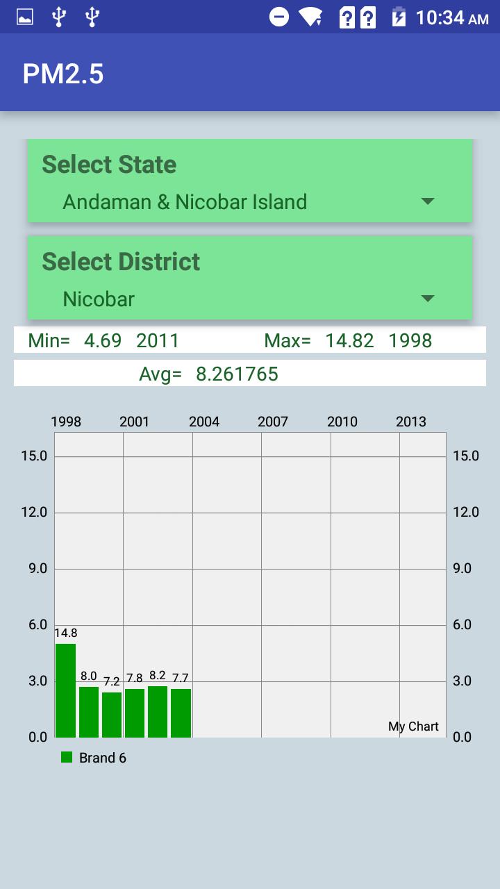 이 응용 프로그램을 사용하면 인도의 각 주 및 지구의 지난 15 년의 PM2.5 오염 물질 수준을 살펴보면 주 및 지구의 오염이 얼마나 오염 된 지 분석 할 수 있습니다.