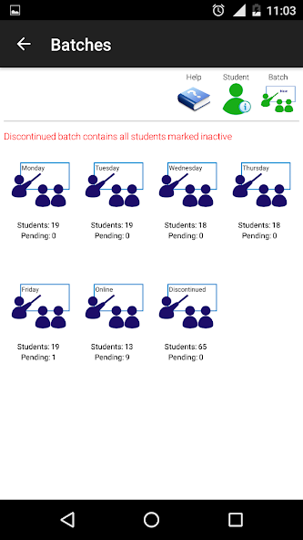 - 교사가 학생의 이름이나 휴대폰 번호를 사용하여 여러 배치에서 학생을 빠르게 찾을 수있는 검색 기능.