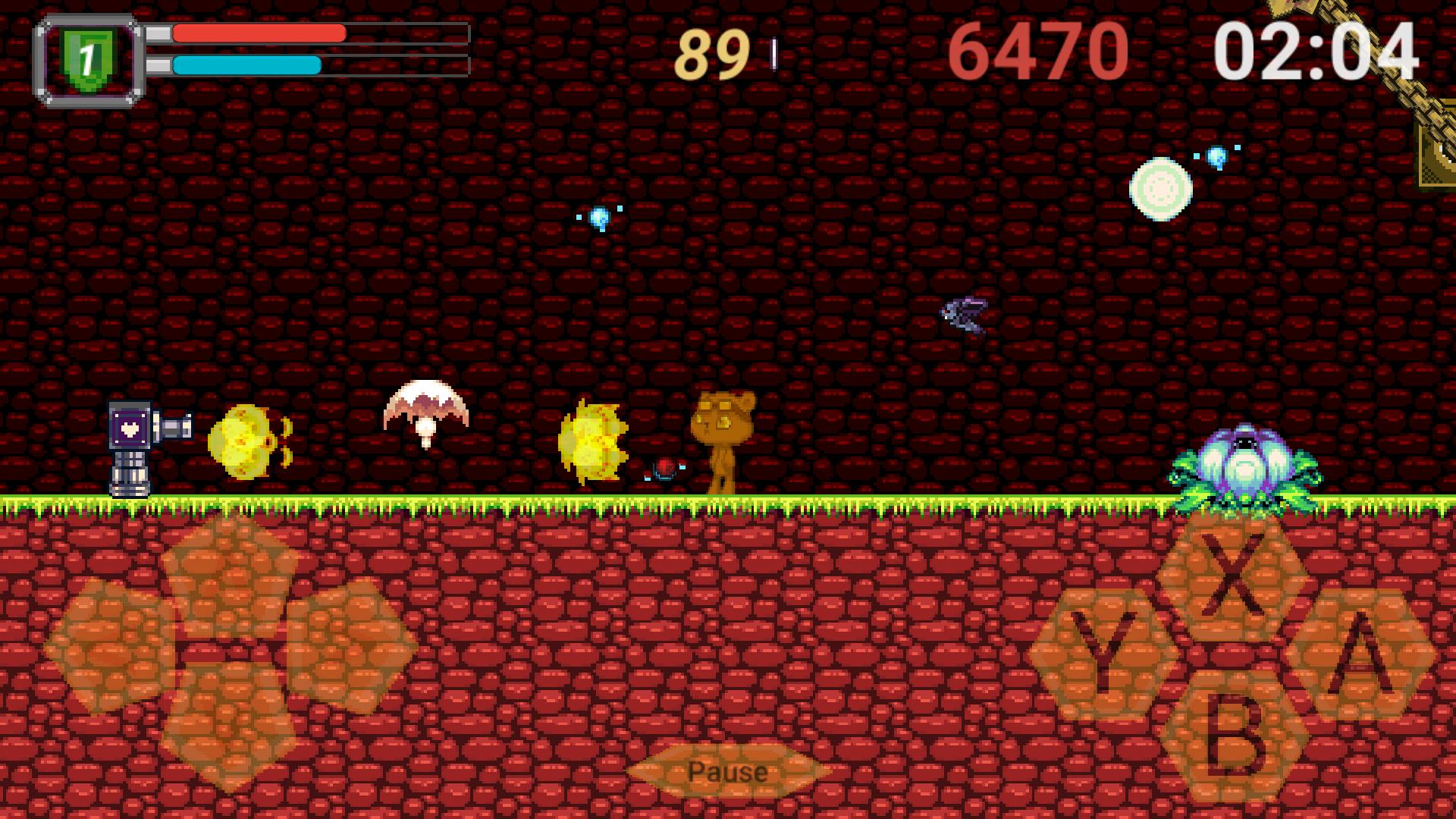 Castlevania, Super Metroid, Super Mario World 및 Mega Man X와 같은 16 비트 레트로 게임의 영향을받습니다. Spelunky와 같은 현대 게임! 디자인에도 기여했습니다. 핵 테디는 새로운 세대의 모바일 게이머를위한 클래식 플랫폼 게임입니다.
