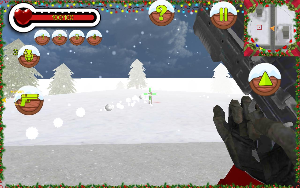 산타 클로스 - 당신의 영웅. 나쁜 놈들이 사로 잡았습니다. 그들은 당신의 선물을 훔쳤습니다. 그러나 당신은 총이 있고 코람 아래에있는 놈들을 가져올 수 있습니다. 스노우건은 가격이 약간 있지만 피해가 양호합니다. 헤드 샷 도적과 더 많은 돈을주십시오. 강력한 AK-47 또는 M16, Sniper Automatic Rifle 또는 많은 공상 과학 총을 구입할 수 있습니다. 누가 산타 무해한가? 이 마을을 깨끗하게하십시오. 크리스마스를 구하십시오!