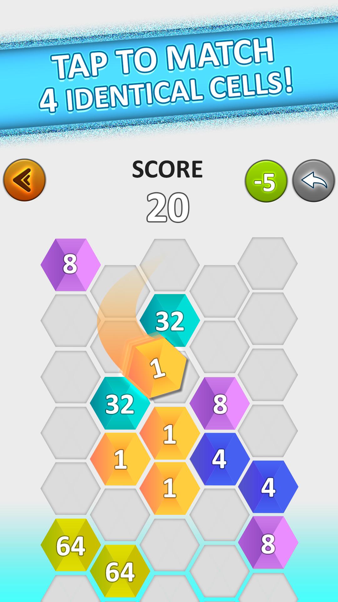 같은 수의 같은 수로 셀을 함께 움직입니다. 셀을 연결하면 숫자가 추가되어 새로운 병합 번호 블록을 형성합니다. 블록 이동이 Cell Connect 초래하지 않으면 4 개의 새로운 블록이 플레이 보드에 나타납니다.