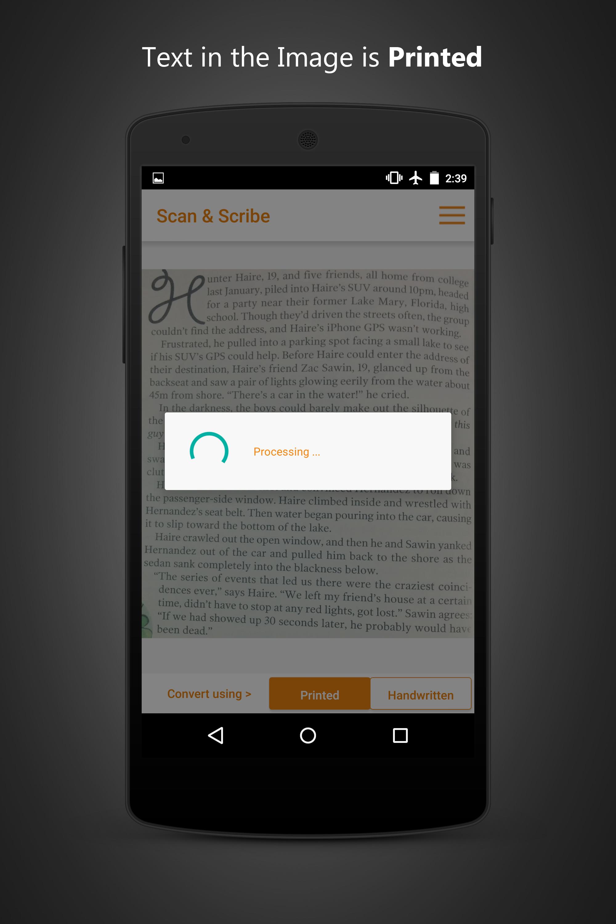Usando Scan & Scribe você pode converter seus documentos impressos e notas manuscritas (discoint) texto editável que você pode copiar, salvar, ouvir ou compartilhar via Facebook, email (Outlook, Gmail etc.), WhatsApp, Dropbox, OneDrive etc.