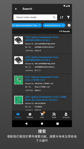 - Scan Mouser 's Barcode para encontrar rapidamente seu produto
