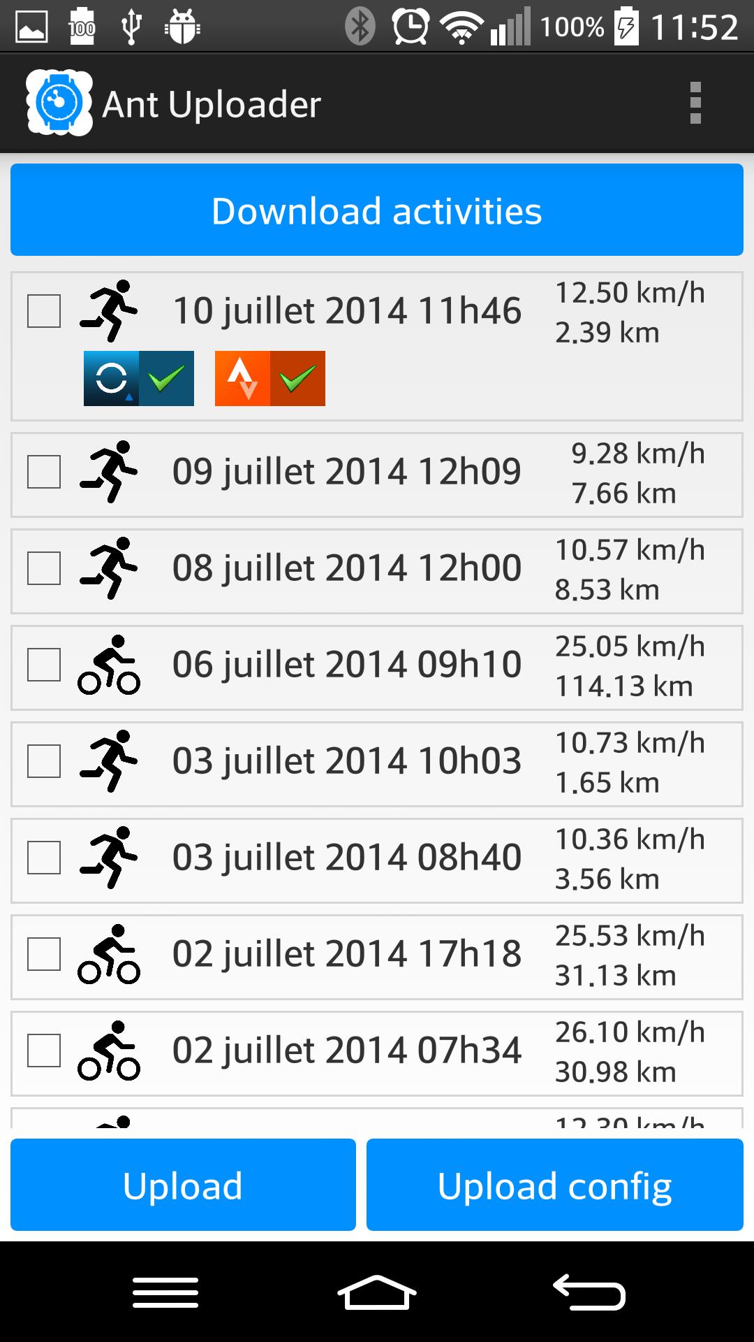 Faça o download das atividades do seu sportwatch para o uploader da ANT. A transferência ANT+ é confiável, mas lenta, se você tiver muitas atividades em sua história, pode levar horas para concluir a primeira sincronização. Os seguintes sincronizados baixam apenas as novas atividades.