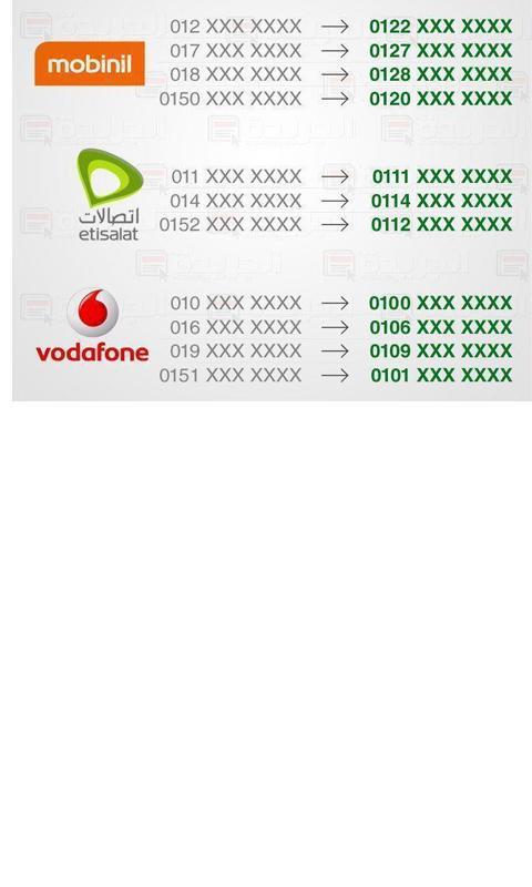 Atualize os números para toda a rede móvel do Egito