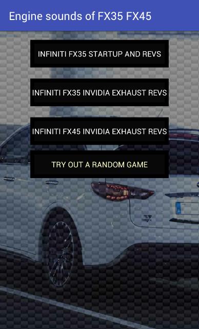 App Todo entusiasta de carros precisa - aproveite os sons épicos de escape do motor do Infiniti FX35 FX45. Brutalmente altos e épicos acelerações, rotações e voam! Corrija seu desejo diário de carros com este aplicativo incrível!