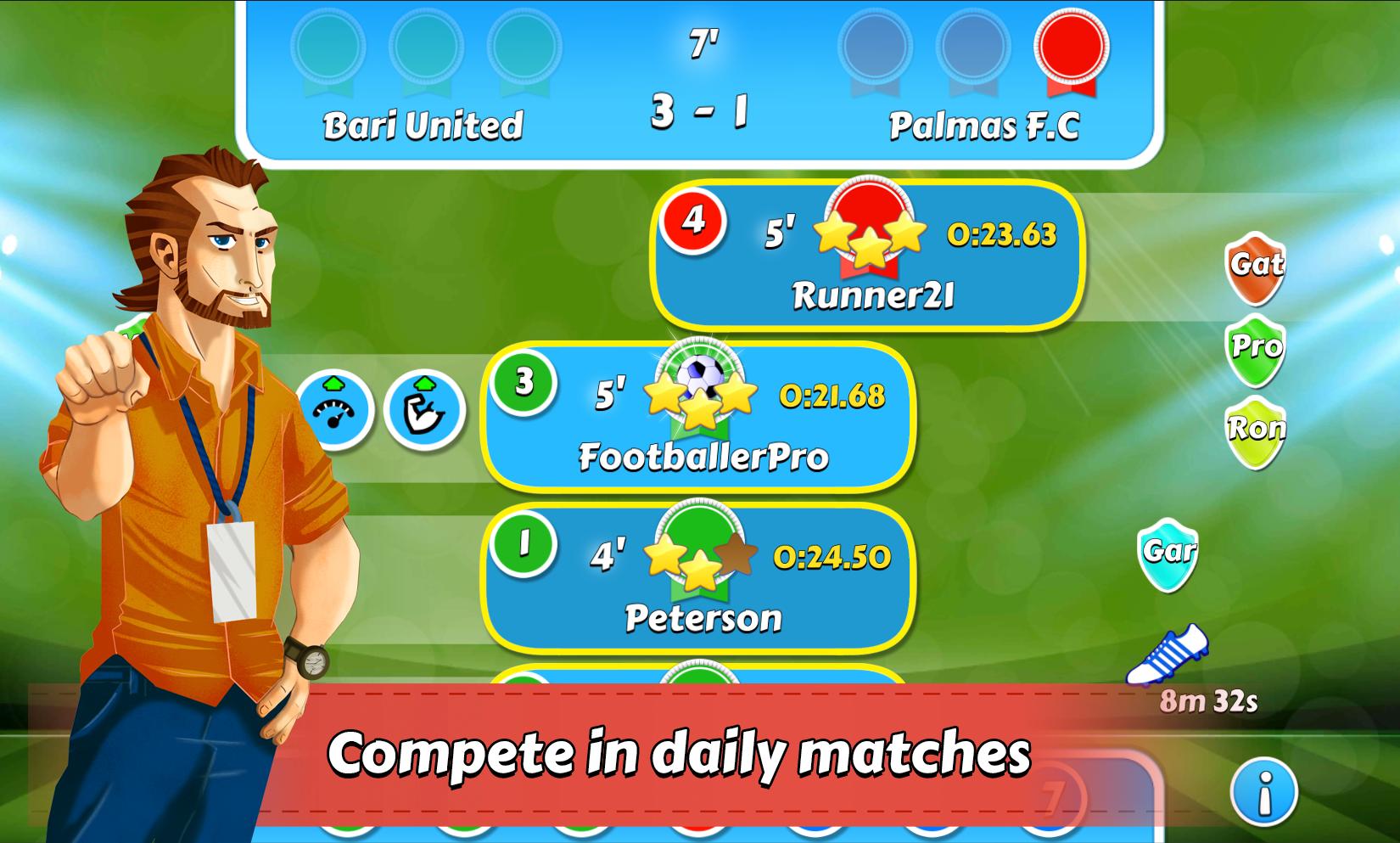 Obtenha recompensas de partidas, batalhas e desafios para construir sua carreira no futebol.