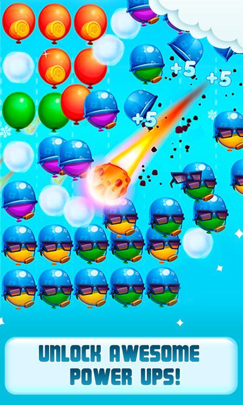 Combine cinco ou mais balões da mesma cor para criar super balões com incríveis poderes de estalos de balão e desbloquear power-ups que possam zapá-lo e explodir quaisquer obstáculos no seu caminho.
