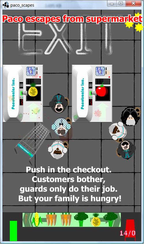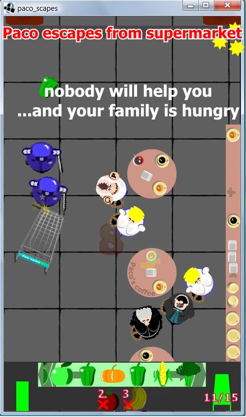 Você tem esposa e filhos e sempre acreditava que seria rico. Mas agora você é pobre, muito pobre. Você tem um pedido de sua esposa, mas bolsos vazios. Encha o carrinho e escape!