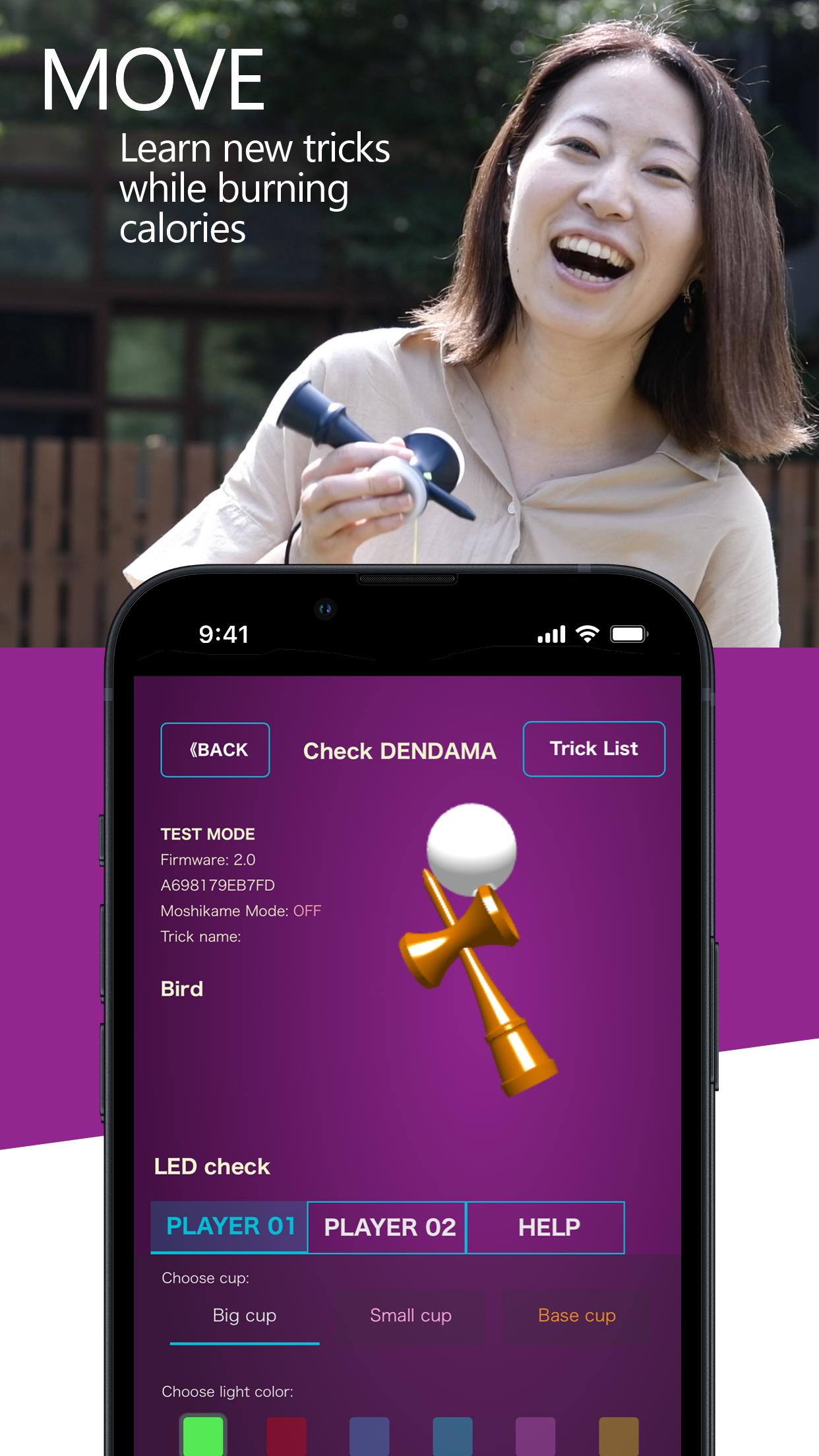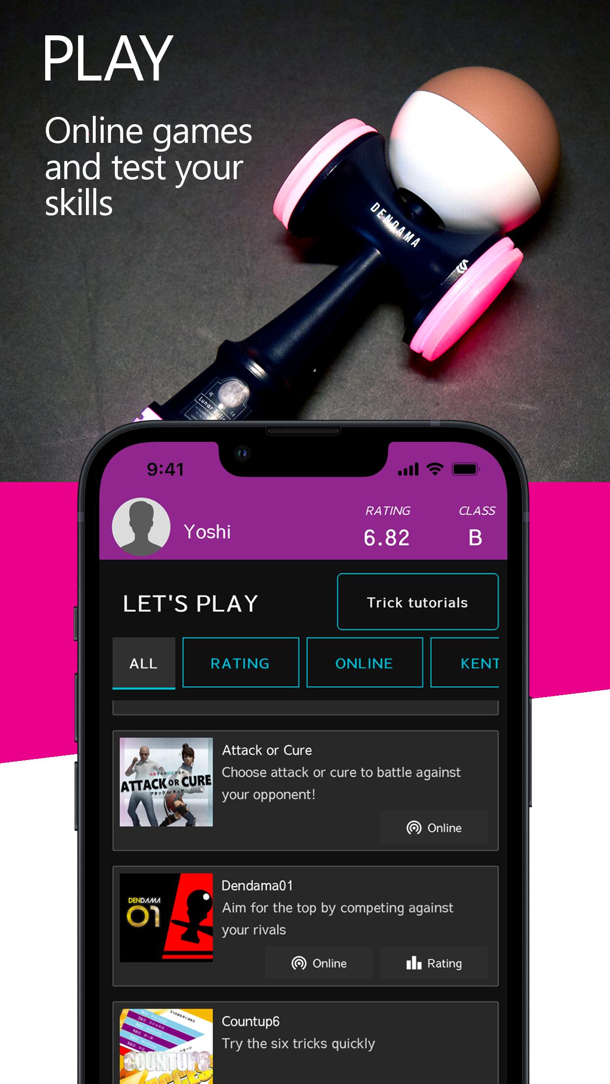 Se você nunca joga Kendama ou Dendama , não se preocupe! Muitos vídeos de truques estão incluídos, do básico a truques avançados. Um "modo de prática" está programado para ser lançado em 2022!
