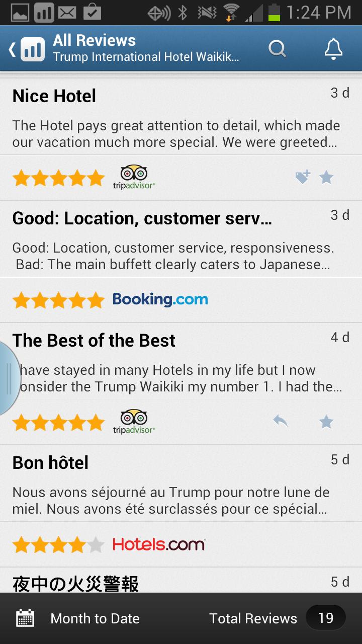 Revinate Mobile обеспечивает доступ к вашим онлайн -обзорам и отчетам.