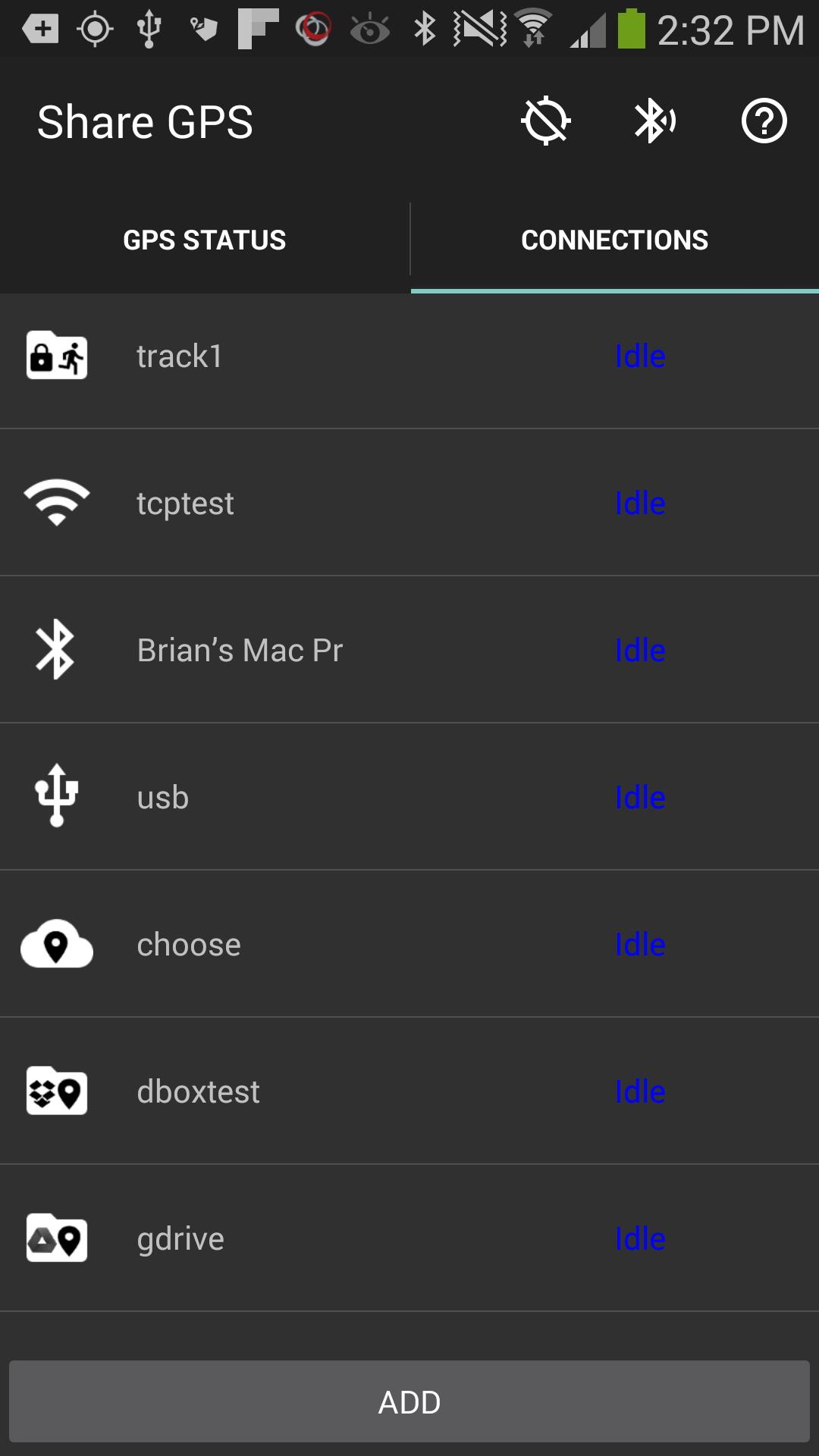 Share GPS поддерживает отправку стандартных данных NMEA по Bluetooth, USB и TCP/IP. Для локальных соединений с такой программой, как Google Earth, вы можете превратить свой ноутбук в навигационное устройство большого экрана, в основном используя ваш мобильный телефон в качестве внешнего GPS. Если у вас есть настройка VPN, вы также можете выполнить удаленный обмен данными о местоположении через TCP/IP по сравнению с вашими соединениями 3G/4G или Wi -Fi. Если оказывается, что ваш мобильный телефон не поддерживает NMEA, Share GPS есть настройка для создания струн NMEA для вас.