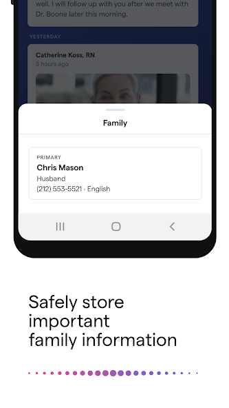 Voalte Family -это приложение, соответствующее HIPAA для клиницистов и пациентов. Это позволяет клиническому персоналу безопасно и легко обновлять членов семьи пациента с текстом, фотографиями или видео с помощью функциональности чата. Члены семьи должны поговорить с командой по уходу за своим любимым человеком, чтобы активировать заявку.