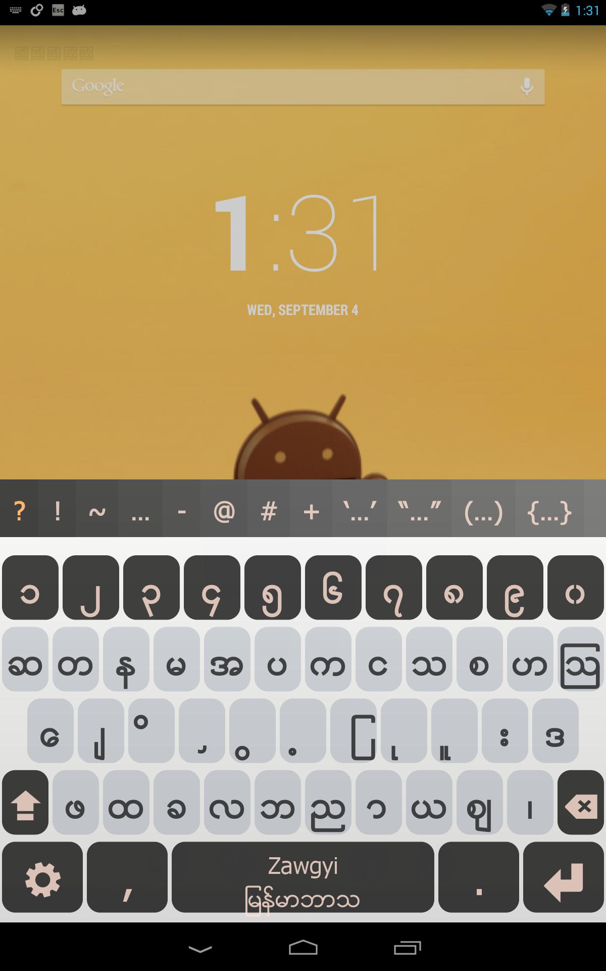 -Та -клавиатура побуждает вас использовать стандарт Unicode вместо Zawgyi.