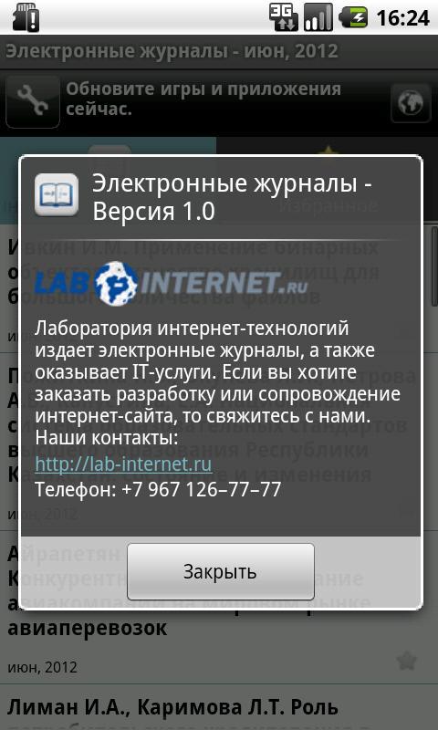 Android Reader для научных и практических журналов, опубликованных издательством «Международный центр науки и инноваций».