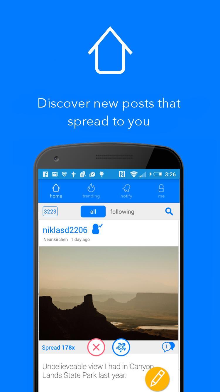 Bellow - это социальная сеть, основанная на геолокации, где вы можете охватить людей за пределами любой границы или социального кластера. Когда вы публикуете публикацию, люди могут продолжать распространять пост, если им это нравится. В конце концов, лучшие посты путешествуют по всему миру, и вы можете увидеть, куда распространяется каждый пост на карте.