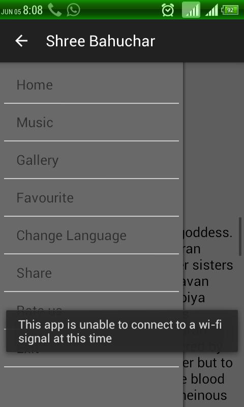 Shree Bahuchar Maa Пуджа поклоняться Богине. Вы можете сделать Aarti, Darshan на ваших мобильных кончиках пальцев. Приложение содержит фотографии Bahuchar MAA, музыку, а также информацию. Приложение Shree Bahuchar Mata имеет основную функцию - это коллекция фотографий, музыкальный раздел, любимый и т. Д.
