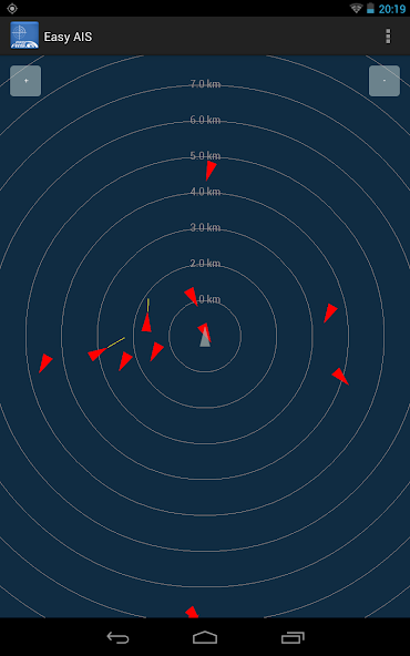 Основной экран после запуска приложения - это виртуальный радиолокарный экран, показывающий целевые показатели AIS в относительном положении для вас