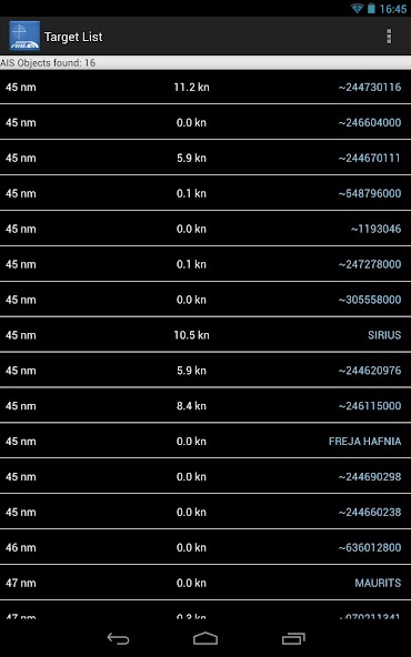 Просто постукивание по экрану по цели AIS приводит вас к списку со всеми передаваемыми деталями этой цели, например, положения GPS, Corse над землей, скоростью над землей, названием корабля, вызовом, длиной, шириной, проектом, портом регистрации…
