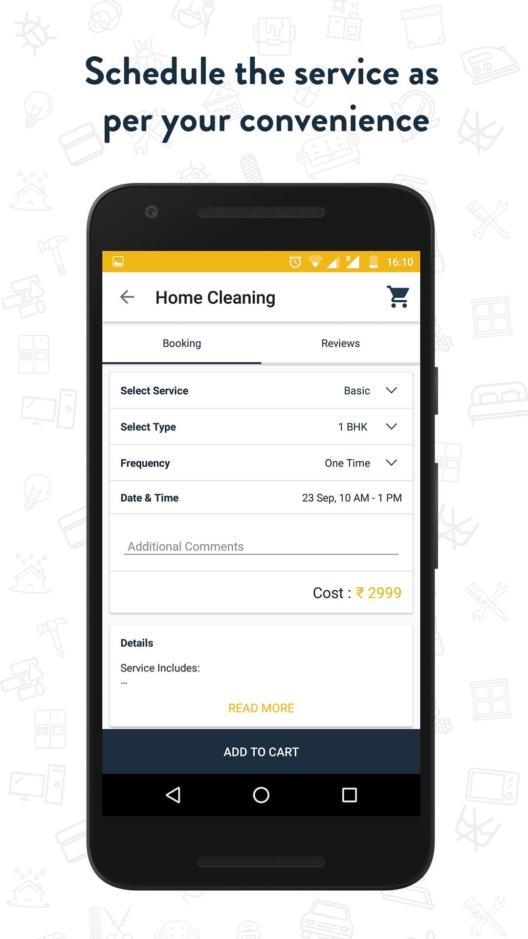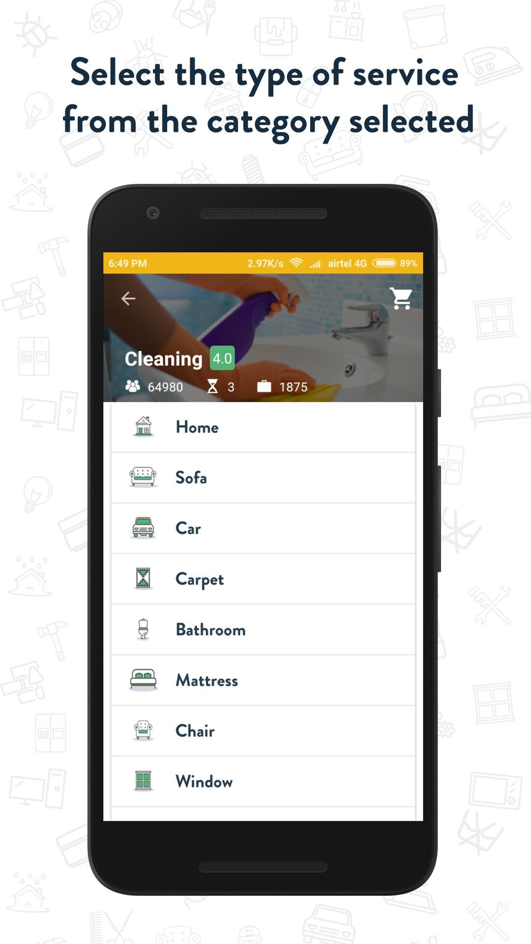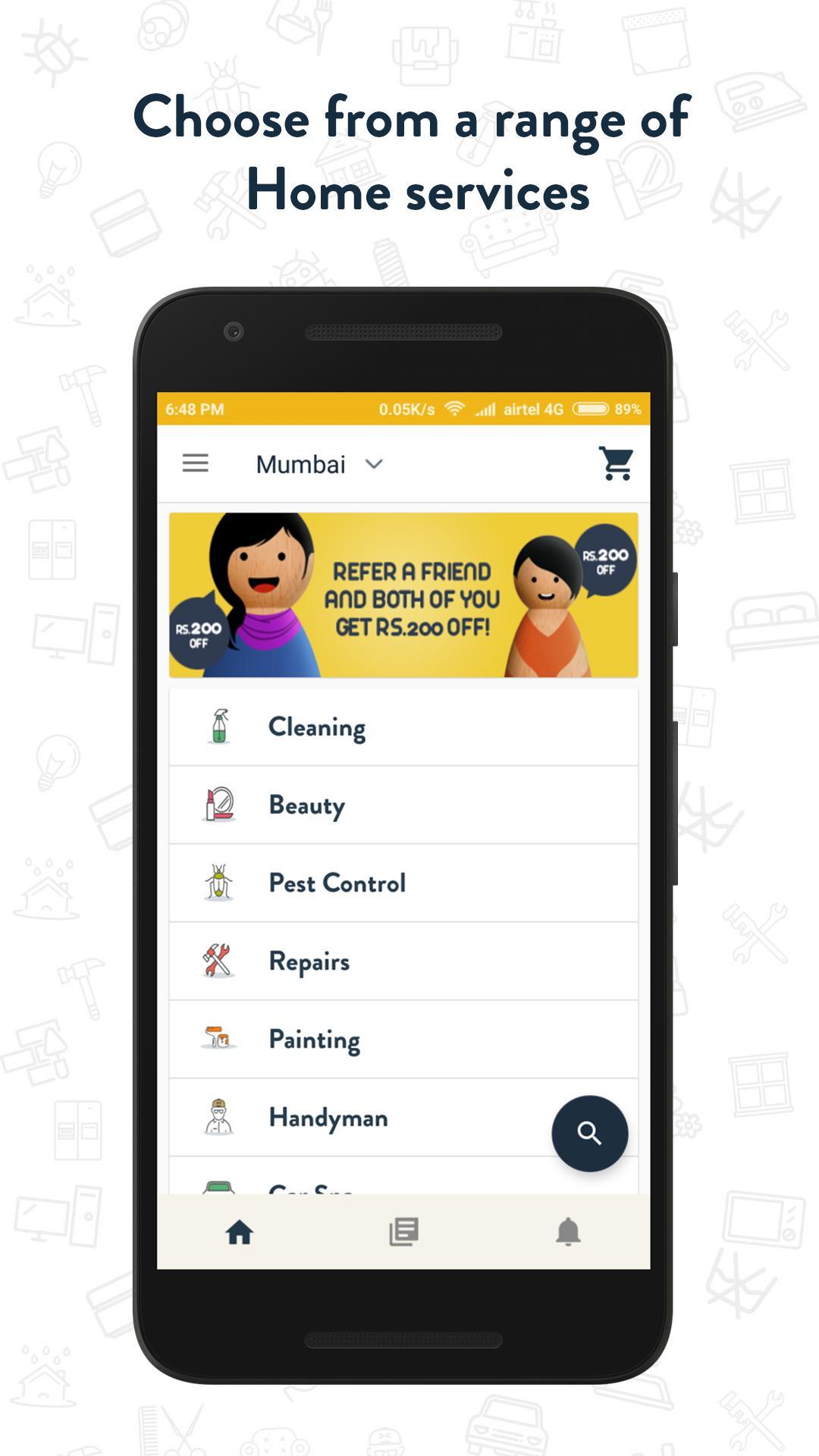 Теперь вы можете выполнить домашние дела, выполненные быстро и легко в Мумбаи, Тане, Нави Мумбаи, Пуне, Бангалоре, Хайдарабаде, Нью -Дели и Гургаоне, бронируя услуги с вашего мобильного телефона.