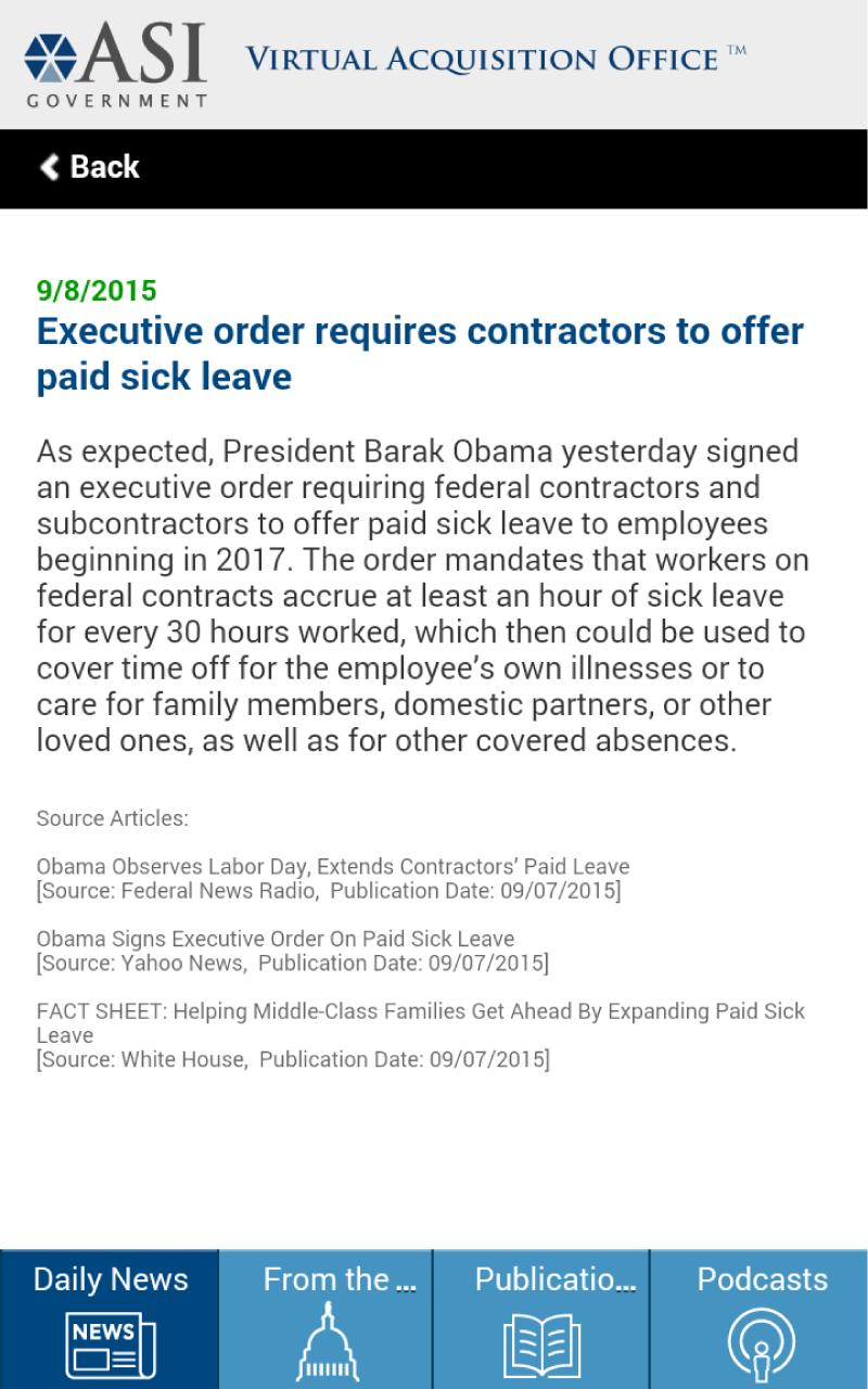 Virtual Acquisition Office ™ (VAO) - это всеобъемлющая услуга, предлагаемая исключительно организациям федерального правительства, которая сохраняет текущую работу рабочей силы приобретения в области «последних и лучших» в федеральных политиках, положениях, законодательстве, решениях протестов и передовой практике, переводящую эту информацию в применимые знания в рамках ежедневных новостей о приобретении, публикаций, проверки, температуры, вмешательстве, в Samples, Samples. Федеральные служащие могут получать непрерывные учебные точки (CLPS) для получения федеральной сертификации приобретения через вебинары и обучение на Vao. Агентства могут приобрести ежегодные подписки на VAO в рамках Списка GSA 70 или контрактов с FedLink. Узнайте больше о Vao на www.gotovao.com или свяжитесь с нами по телефону 1.877.982.6826